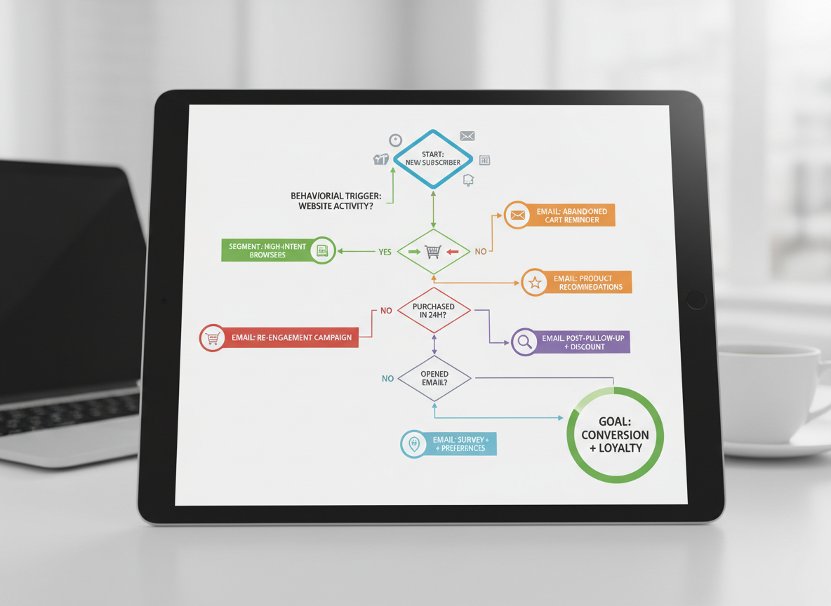 The most important principle is behavioral targeting. Instead of segmenting by demographics, high-performing brands segment by actions: browsing behavior, purchase patterns, engagement, and lifecycle stage. Data shows that behavioral emails outperform generic campaigns by 3–5x in click-through rates.