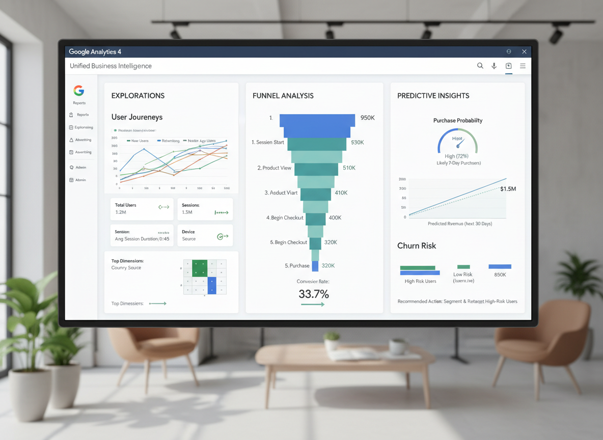 Explorations are GA4’s hidden weapon. Path exploration reveals navigation patterns and drop-off points; funnel exploration shows conversion bottlenecks; segment overlap identifies audience intersections you never knew existed. These insights translate directly into better funnel optimization.